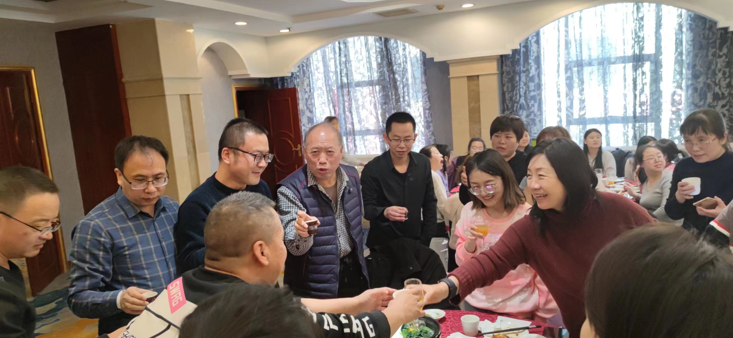 聚餐的過(guò)程中,在董事長(zhǎng)陳雪琴的號(hào)召下,全體陳明人共同舉杯,慶祝這相聚的時(shí)刻,陳明人互相交談著,增進(jìn)了部門與部門之間,上級(jí)與下級(jí)之間的相互了解,增強(qiáng)了團(tuán)隊(duì)凝聚力,整個(gè)餐廳都彌漫著陳明集團(tuán)這個(gè)大家庭的暖意。